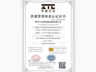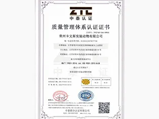 我司秉持實驗動物質(zhì)量是公司生命線,建立了完善的飼養(yǎng)操作流程,嚴控實驗動物質(zhì)量,并依據(jù)CNAS-CL06:2018《實驗動物飼養(yǎng)和使用機構(gòu)質(zhì)量和能力認可準則》建立了質(zhì)量管理體系,于2021年獲得ISO 9001質(zhì)量管理體系和IOS 14001環(huán)境管理體系認證。我司將不斷完善和改進質(zhì)量管理體系,為客戶提供更高品質(zhì)的產(chǎn)品及服務(wù)。